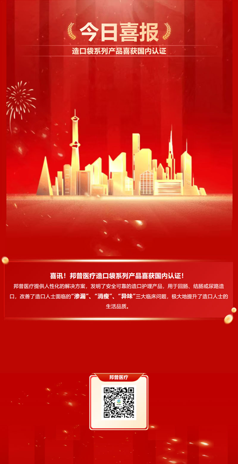 邦普醫療提供人性化的解決方案,發明了安全可靠的造口護理產品,用于回腸、結腸或尿路造口,改善了造口人士面臨的“滲漏”、“消瘦”、“異味”三大臨床問題,極大地提升了造口人士的生活品質。